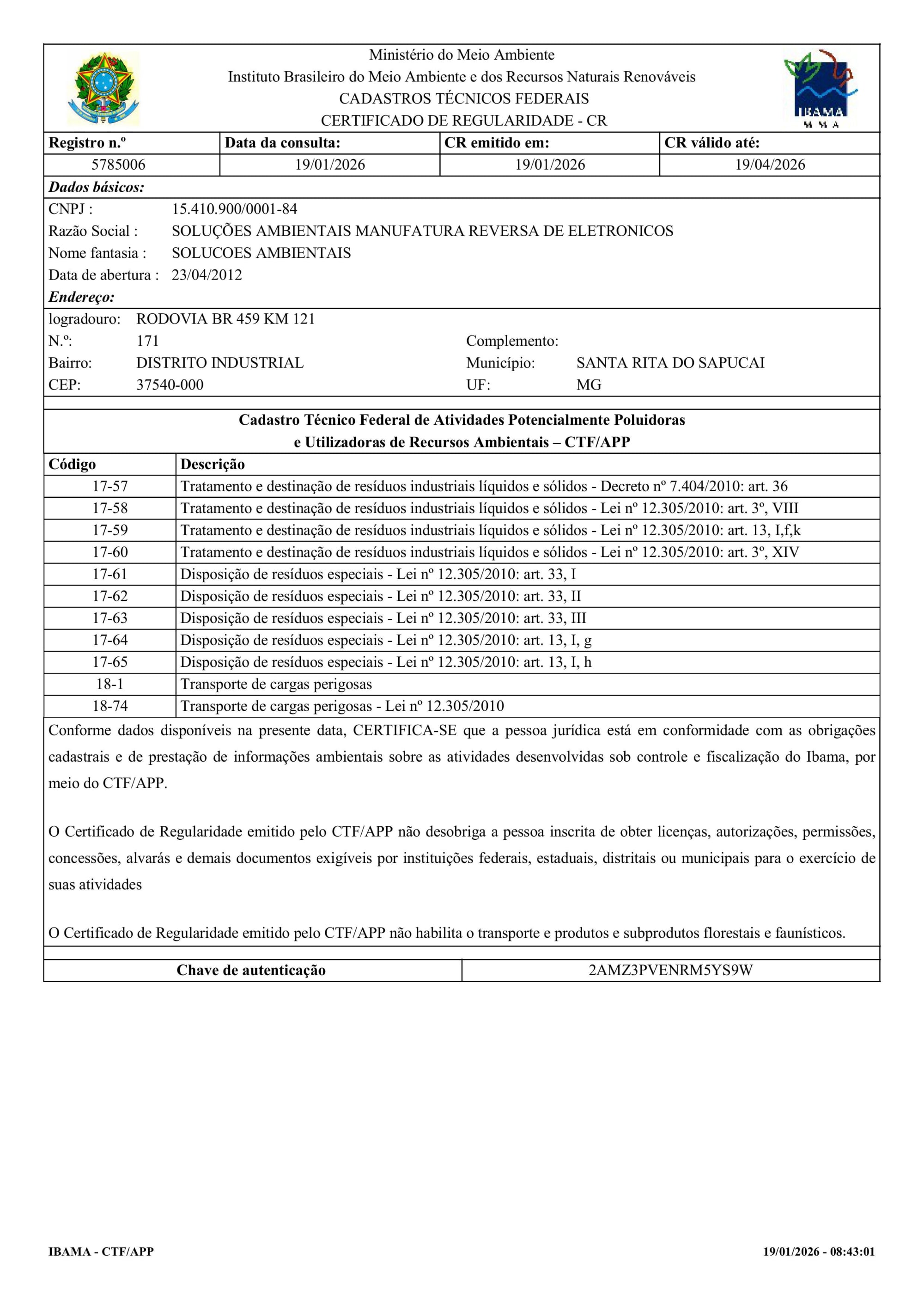 Rodovia BR 459 Km 121, nº 171 - Distrito Industrial